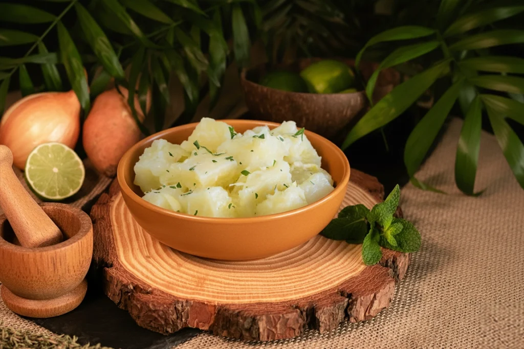 Zutaten: Yucca, Süßkartoffel, Malanga, Maiskürbis, Zwiebel, Knoblauch, Chilischoten, Tomatenmark, Schmalz, Kreuzkümmel, schwarzer Pfeffer und Salz nach Geschmack. Als Fleisch werden Kalbs-, Schweine- und Rinderknochen hinzugefügt.
