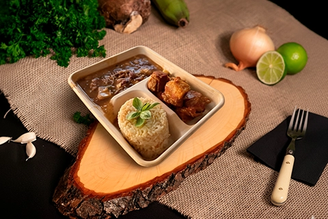 Ein Klassiker bei kubanischen Festen, mit Reis-Bohnen-Eintopf, gebratenem Schweinefleisch und Maniok mit Mojo-Sauce.